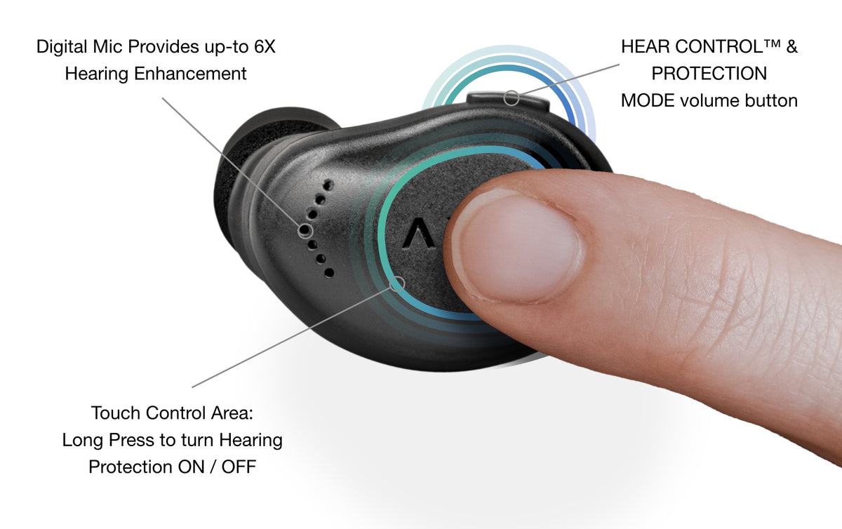 - CONTROL EVERYTHING WITH THE TAP OF A FINGER Quickly and easily change the settings on your earbuds to turn hearing protection and enhancement on/off, adjust the volume, skip tracks, and even answer calls—without ever having to fumble for your phone ( with optional bluetooth addition ).